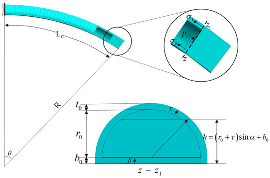 The moment generated by air pressure after the actuator bends is mainly composed of the inner surface of the variable stiffness structure, the top semicircular layer of the fiber reinforced actuator, and the moment on the end cover. Considering the air pressure in x-direction is very small and can be neglected. Therefore, the moment acting on the inner side is: