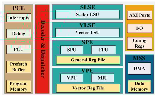 - Homh, M.Y.; Wu, J.M. Vector Register Design with Register Bypassing for Embedded DSP Core. In Proceedings of the 2012 IEEE 14th International Conference on High Performance Computing and Communication & 2012 IEEE 9th International Conference on Embedded Software and Systems, Liverpool, UK, 25–27 June 2012; IEEE: Piscataway, NJ, USA, 2012; pp. 1033–1038. [Google Scholar]