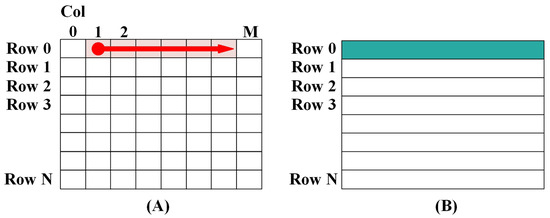 Vector register versus SIMD register. (A) shows vector register files mentioned in this project and the red arrow shows the start-point and length for the accessed vector; (B) is a common SIMD register file. N represents the total amount of rows, while M represents the column number.