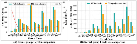 Figure 15B illustrates the comparison of the code size for kernel group 1 between this project and the SWS scenario where software scheduling is employed. This project achieves a 38.04% reduction in code cost.