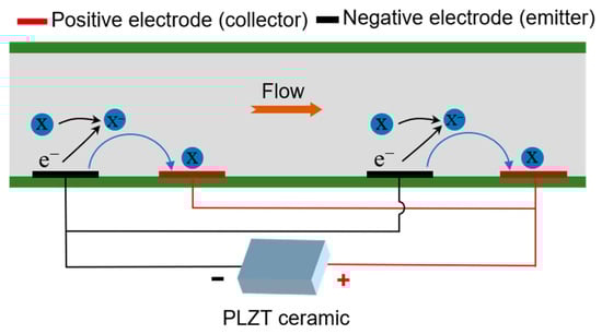 It should be noted that the electric current produced by the PLZT ceramic (about several nA) is so small compared to the EHD current (about several μA) [] that the electric current produced by the PLZT ceramic can be ignored in the EHD model.