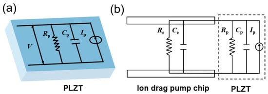 The equivalent electrical model of (a) the individual PLZT ceramic and (b) the proposed photo-induced ion drag pump.