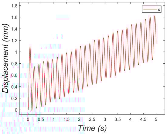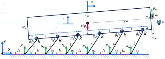 This case considered a rigid body with an eccentric mass attached to its center of mass, including vertical and horizontal displacements on a surface with Coulomb friction force (Figure 3) [].