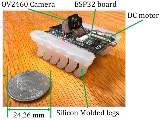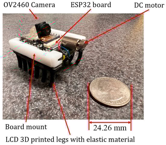 The first prototype was developed using HEXBUG-nano (Spin Master, Toronto, ON, Canada) for the movement mechanism and mounting an ESP32-CAM (Ai-Thinker, Shenzhen, China) with a 3.7 V 290 mAh lithium-ion battery glued to it using a double-sided mounting tape.