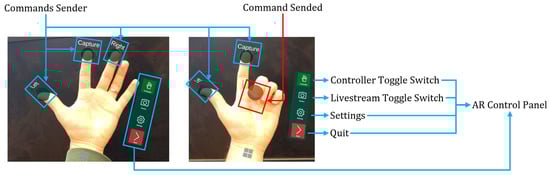 For collecting structural data in remote hard-to-reach areas, a framework consisting of an access point, sensor nodes, teams of small robots, and AR headsets was developed, which can enhance the human perception of structural health conditions [,]. Interactive robot control using AR is suggested to replace the traditional methods due to its practicality and the fact that it is more intuitive to use. This method was employed in controlling the Yaskawa Motoman SIA5D in automatic and manual mode []. In 2020, Makhataeva and Varol [] reviewed the use of AR in four categories, namely, human–robot interaction, medical robotics, motion planning and control, and multi-agent systems. In addition to the use of AR, asynchronous P300-based systems [] and eye blink electroencephalograms (EEGs) [] are used as brain–computer interfaces for human–robot collaboration (HRC).