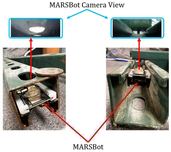 MARSBot visual inspection of the slotted side of the strut channel is displayed on the left, and MARSBot inspection of the connections between strut channels is shown on the right.