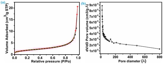 Specific area and pore size distribution, (a) BET, and (b) pore size distribution.