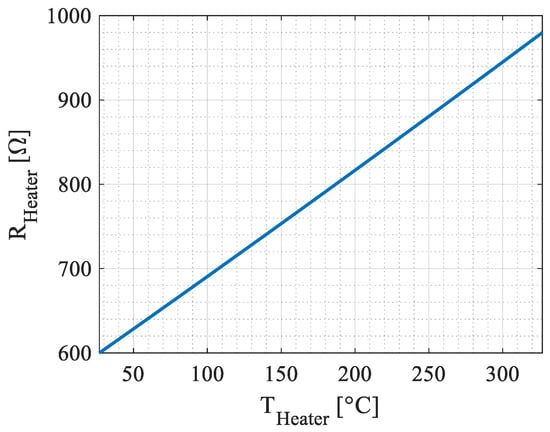 Figure 5 exhibits the tungsten heating resistor value as function of the temperature: