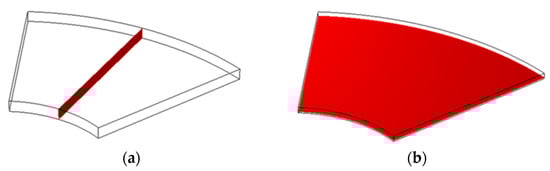 To evaluate the formation of circumferential flow between films of the 3D-stack (N) and the molecular transport state, a finite element analysis was performed using the software COMSOL Multiphysics ver. 6.0 (COMSOL AB Inc., Stockholm, Sweden). Since the number of elements in a three-dimensional analytical model, including containers and structures is large, and the calculation time is enormous, we created a geometry only between films and applied the centrifugal force and Coriolis force as volumetric forces to verify the biomolecular transport state and the effect of the stacking spacing between films during rotation. A schematic diagram of the analysis model is shown in Figure 3.