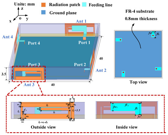 Geometry of the proposed 4 × 4 MIMO (multiple-input multiple-output) antenna system.