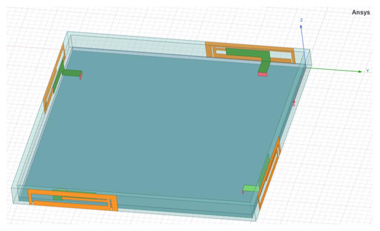 Simulation model of the proposed 4 × 4 MIMO antenna system.