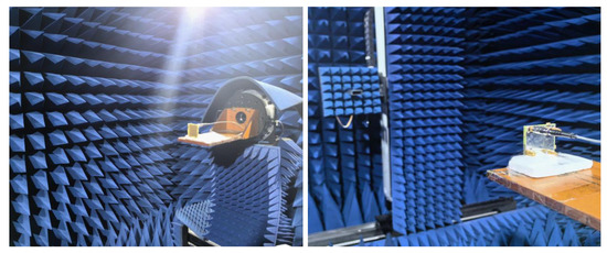 In this study, the antenna radiation pattern was calculated and simulated using HFSS by configuring the far-field environment. Additionally, the actual radiation pattern of the antenna was measured in the microwave millimeter-wave antenna darkroom, as shown in Figure 12.