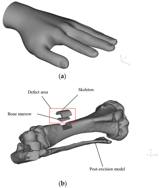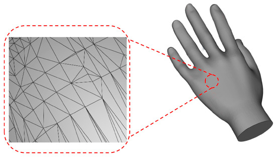 The human hand model was sourced from the online 3D model-sharing platform Diwei Model (www.3dwhere.com (accessed on 14 July 2024)), as illustrated in Figure 2a, and printed using PLA material. To streamline the subsequent printing experiments, the model’s support structure remained intact after printing.