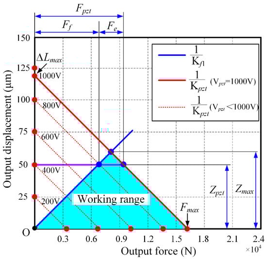 The stiffness of the PZT Kpzt and stiffness of the flexible hinge Kf greatly influence the input and output characteristics of FPP, especially its working range, maximum output displacement and effective output force. As described in Table 1, the PZT used in this study was able to generate a displacement of up to 120 μm, had an axial stiffness of 130 N/μm, and could deliver a maximum driving force of 16,000 N.