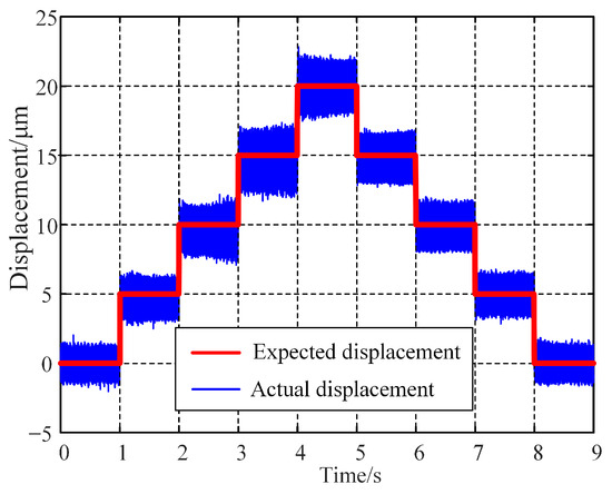 During the motion resolution test, a step signal was applied to the PZT to observe the highest achievable motion resolution of the platform. The test results, shown in Figure 17, indicate that the resolution of the FPP can reach 5 nm, effectively ensuring processing accuracy during machining.