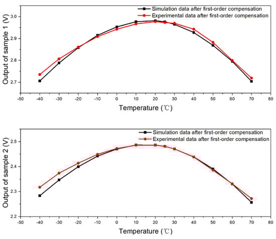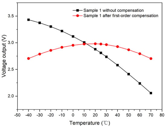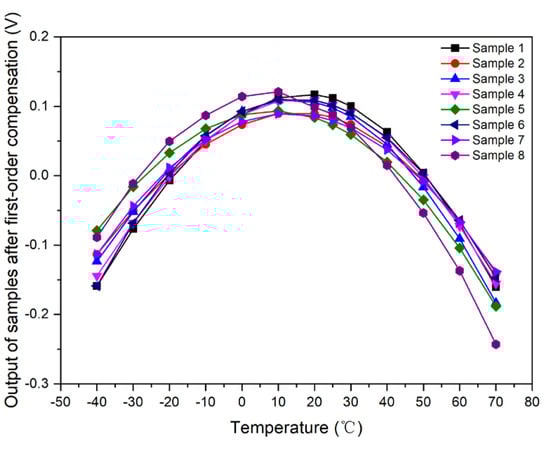 Output curve of samples with respect to temperature after first-order compensation.