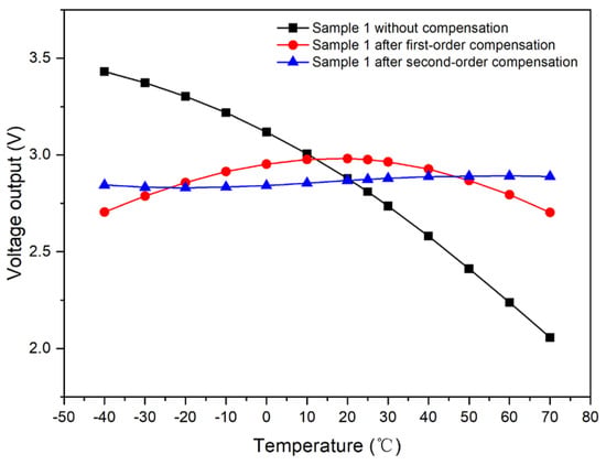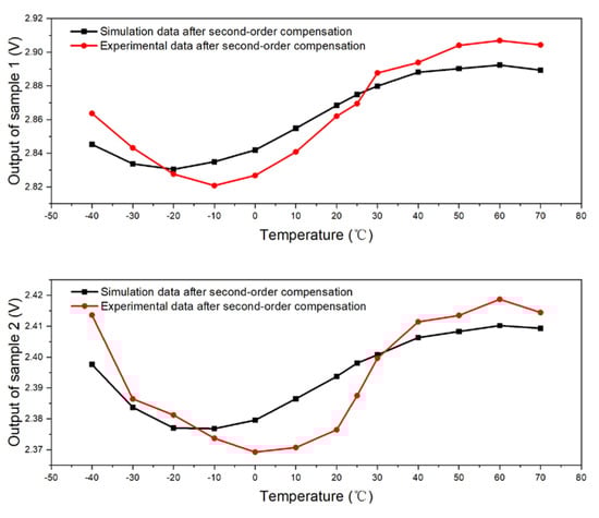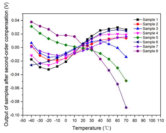 Output curve of samples with respect to temperature after second-order compensation.