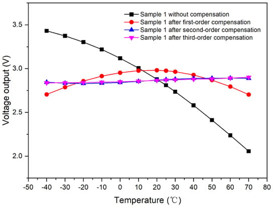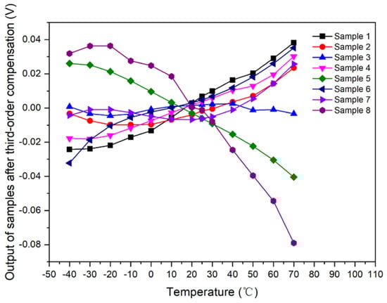 Output curve of samples with respect to temperature after third-order compensation.