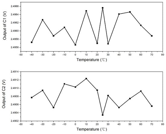 - Combine photosensors 1 and 2 with the closed-loop compensation circuit into experimental Samples C1 and C2. Set the incubator temperature within the range of −40 to 70 °C and test the output voltage of the photosensor under different temperatures.