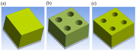 where is temperature, is the thermal conductivity, is time, is the material density, is the specific heat, is the coefficient of thermal expansion, is the elastic modulus, and is the heat generated inside the body [26,27]. The resist reflow above its glass transition temperature can be assumed to be an ideal fluid, which is incompressible and has a constant density, and the force exerted across a geometrical surface element within the fluid. For an incompressible fluid solver, the Navier–Stokes equation as the governing equation and the continuity equation are