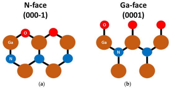 - Li, D.; Sumiya, M.; Fuke, S.; Yang, D.; Que, D.; Suzuki, Y.; Fukuda, Y. Selective Etching of GaN Polar Surface in Potassium Hydroxide Solution Studied by X-ray Photoelectron Spectroscopy. J. Appl. Phys. 2001, 90, 4219–4223. [Google Scholar] [CrossRef]