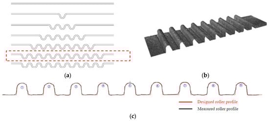 For all roll stations the produced heights (depths) of both the top and bottom rolls were in accordance with the ideal shape (see Figure 15c,d), with the dimensional error being less than 7%.