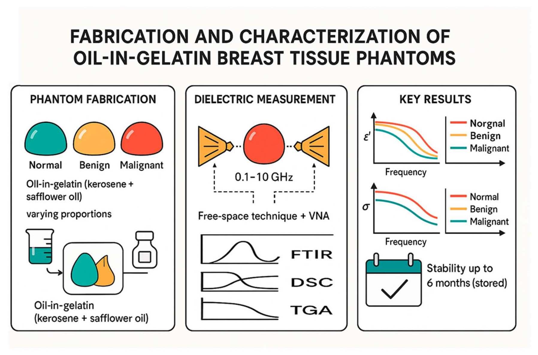 Fabrication and Dielectric Characterization of Stable Oil in Gelatin Breast Tissue Phantoms for Microwave Biomedical Imaging