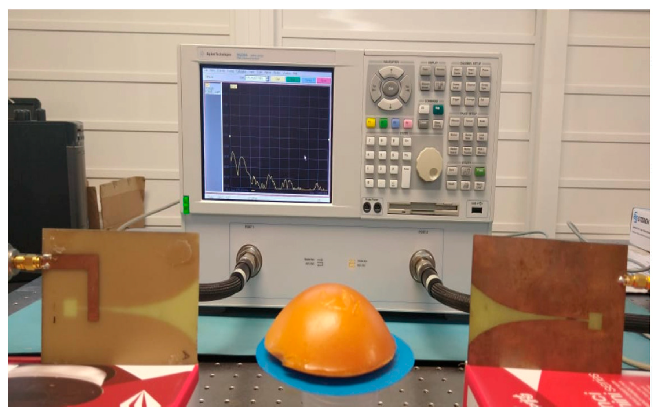- Porter, E.; Fakhoury, J.; Oprisor, R.; Coates, M.; Popović, M. Improved tissue phantoms for experimental validation of microwave breast cancer detection. In Proceedings of the 4th European Conference on Antennas and Propagation (EuCAP), Barcelona, Spain, 12–16 April 2010; pp. 1–5. [Google Scholar]