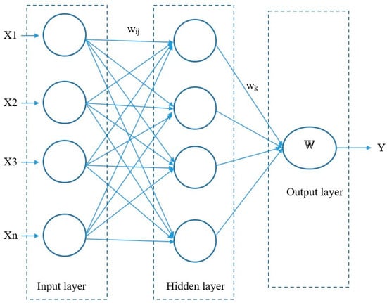 where xi refers to variables that describe the input parameters related to the technical system; wk denotes the weighted features related to the variable neurons; wij represents the weight between the ith input node and the jth hidden unit; represents the bias of the jth hidden node; and represents the bias of the kth output node.