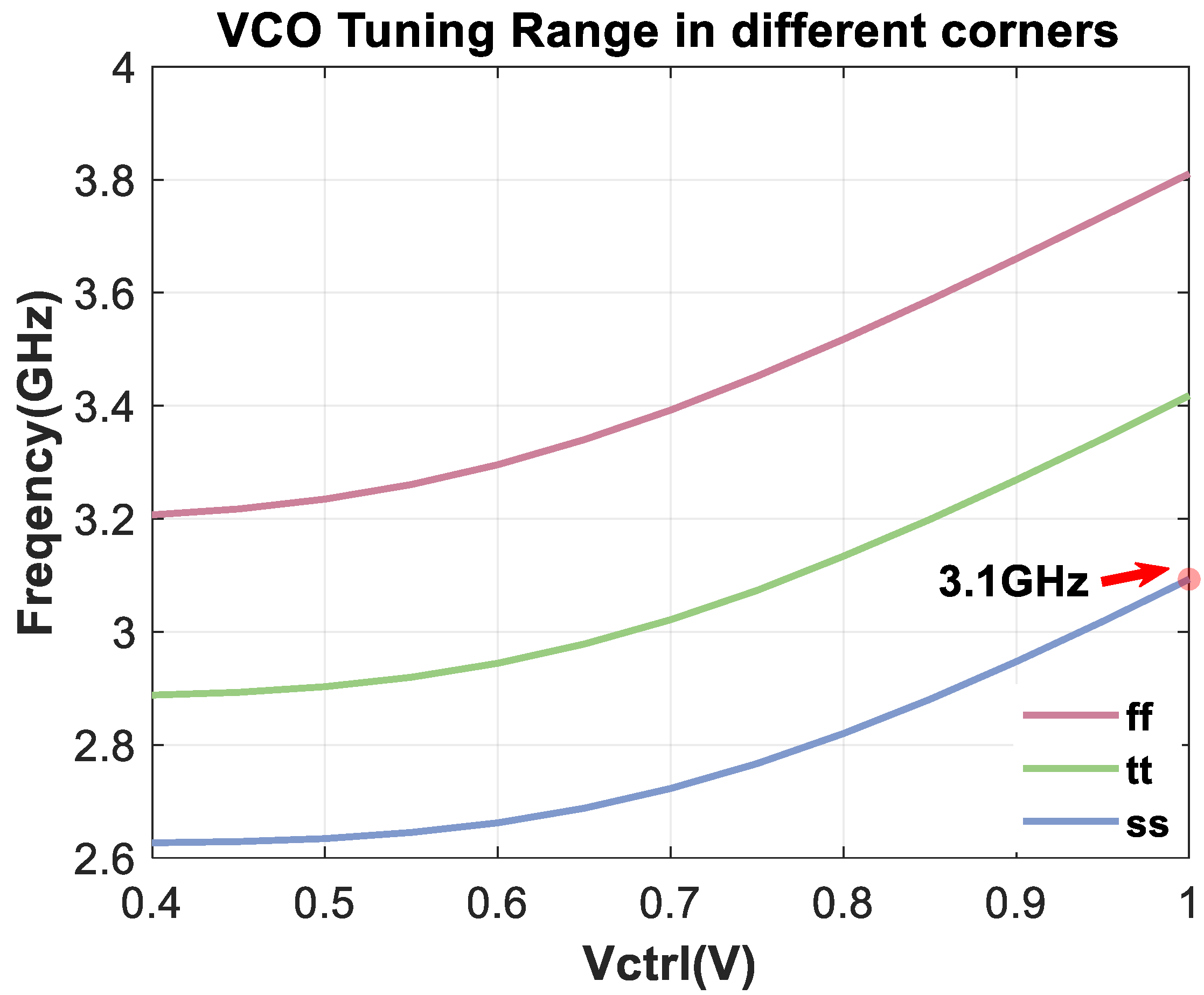 Figure 20. VCO’s maximum tuning ranges in different corners.