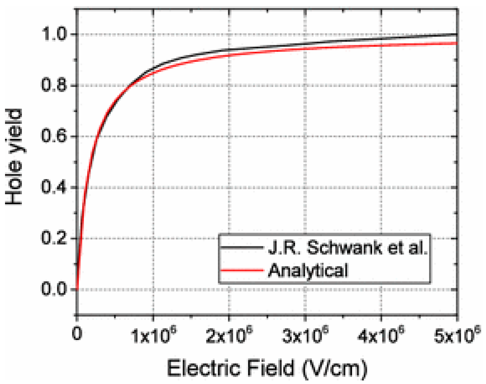 - Boch, J.; Saigne, F.; Dusseau, L.; Schrimpf, R.D. Temperature effect on geminate recombination. Appl. Phys. Lett. 2006, 89, 042108. [Google Scholar] [CrossRef]