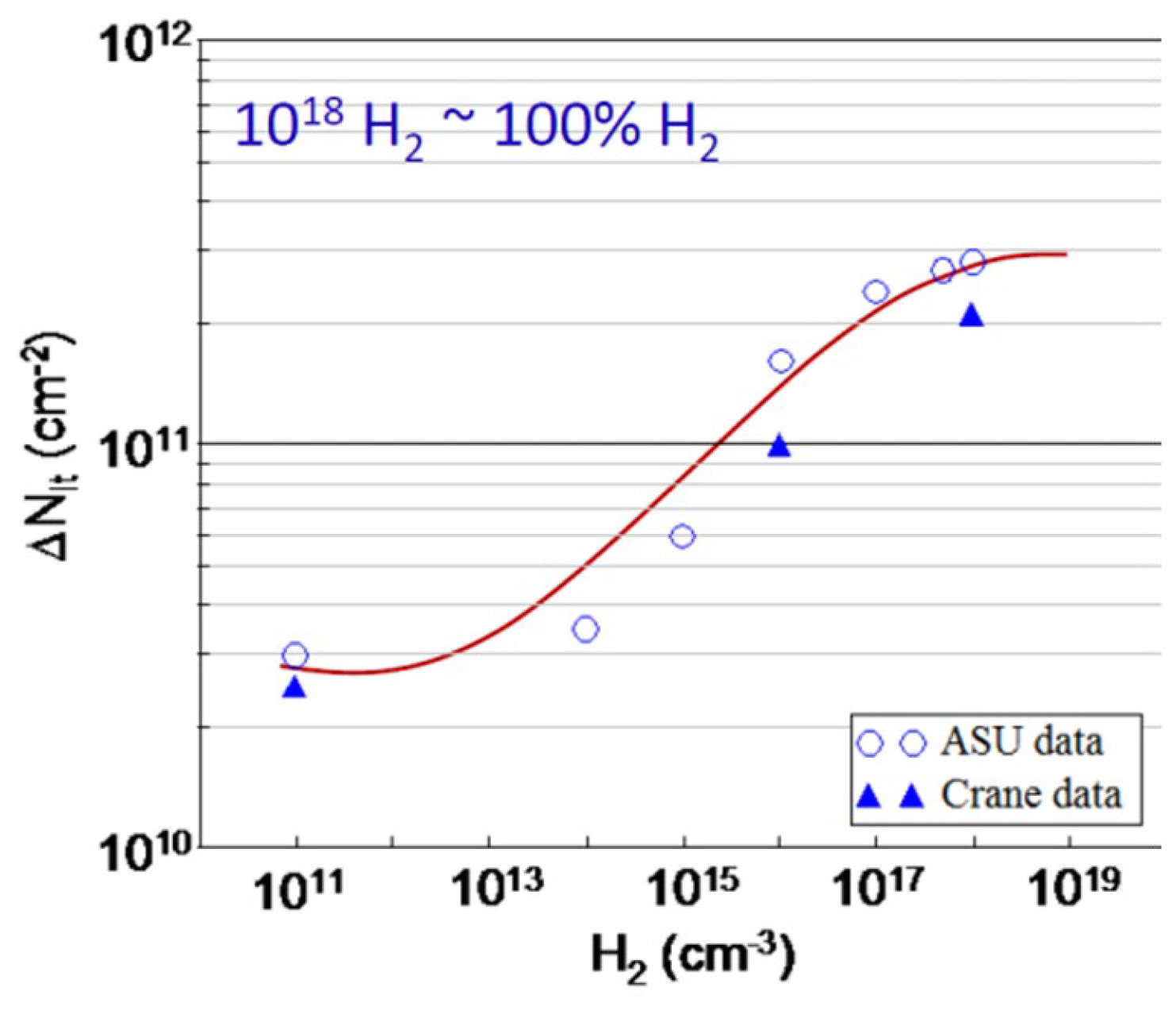 - Tuttle, B.R.; Hughart, D.R.; Schrimpf, R.D.; Fleetwood, D.M.; Pantelides, S.T. Defect Interactions of H2 in SiO2: Implications for ELDRS and Latent Interface Trap Buildup. IEEE Trans. Nucl. Sci. 2010, 57, 3046–3053. [Google Scholar]