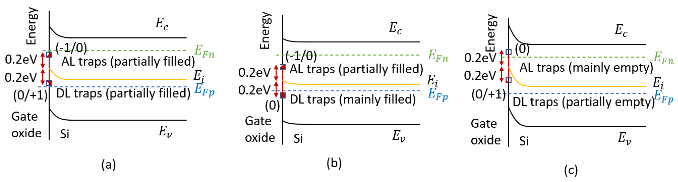 3.3.2. Influence of Interface Trap Energy Levels and Capture Cross-Sections