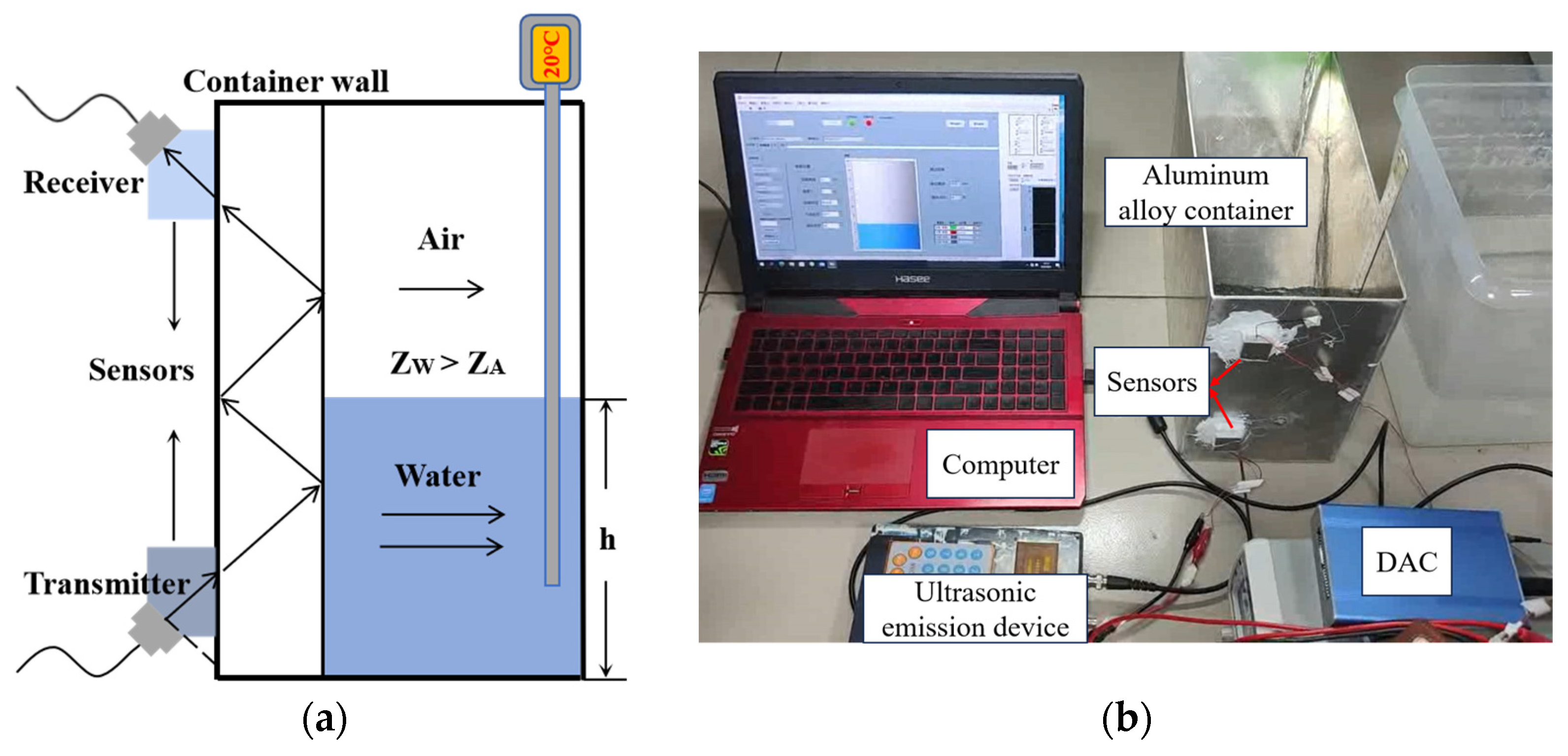 - Zhang, B.; Wei, Y.J.; Liu, W.Y.; Zhang, Y.-J.; Yao, Z.; Zhao, L.-H.; Xiong, J.-J. A liquid level measurement technique outside a sealed metal container based on ultrasonic impedance and echo energy. Sensors 2017, 17, 185. [Google Scholar] [CrossRef] [PubMed]