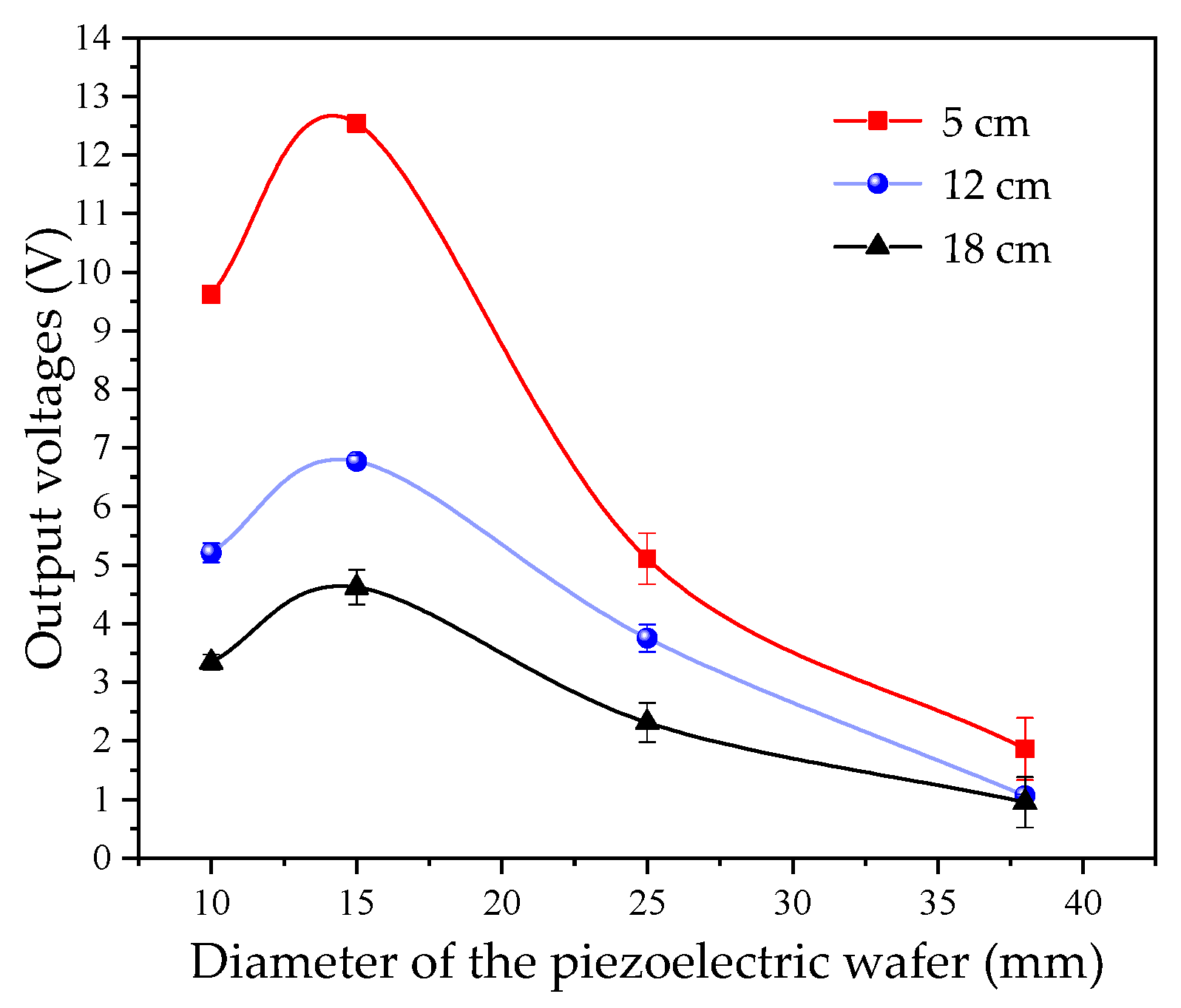 3.1.1. The Influence of the Diameter of the Piezoelectric Ceramic Sheet