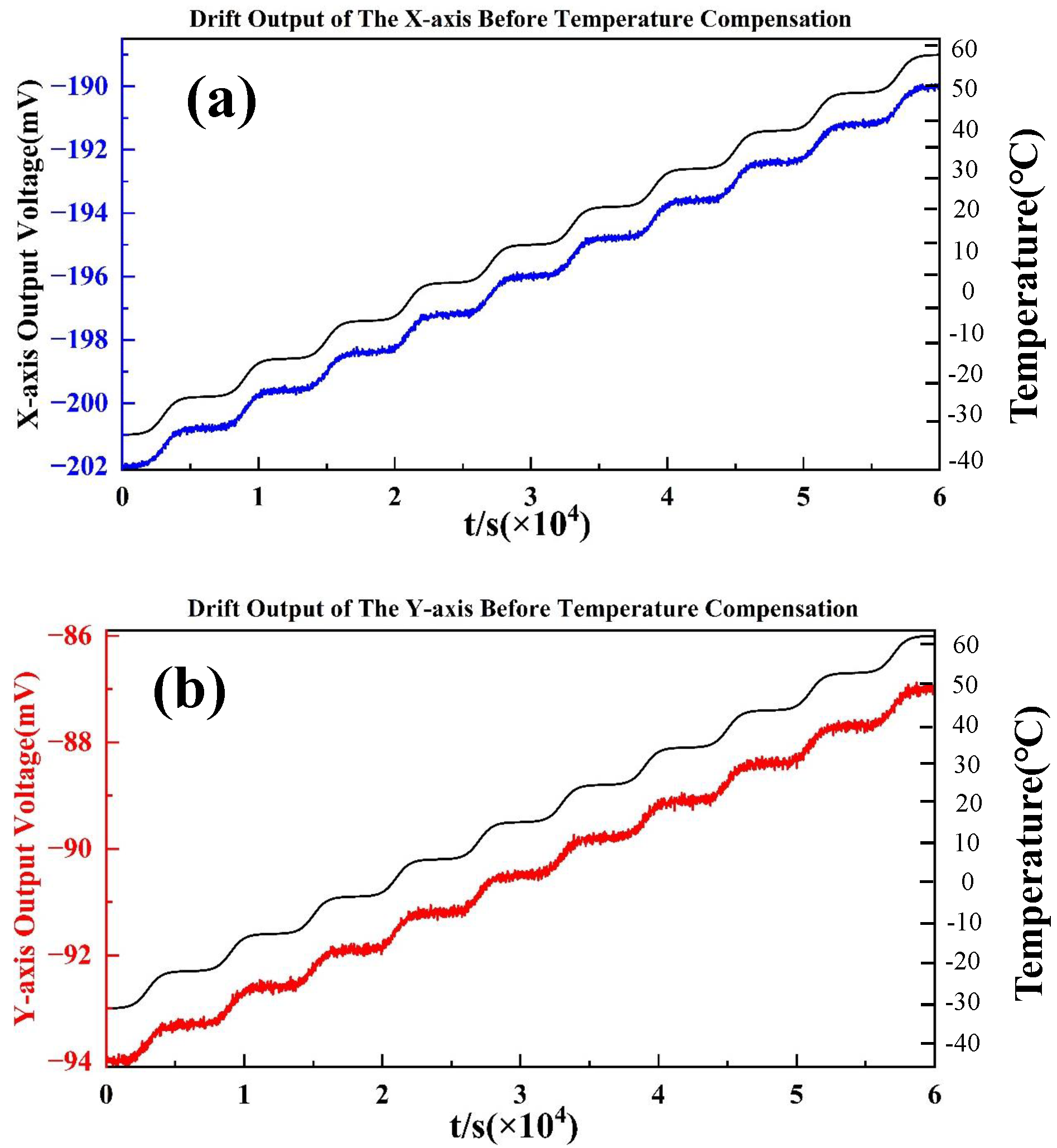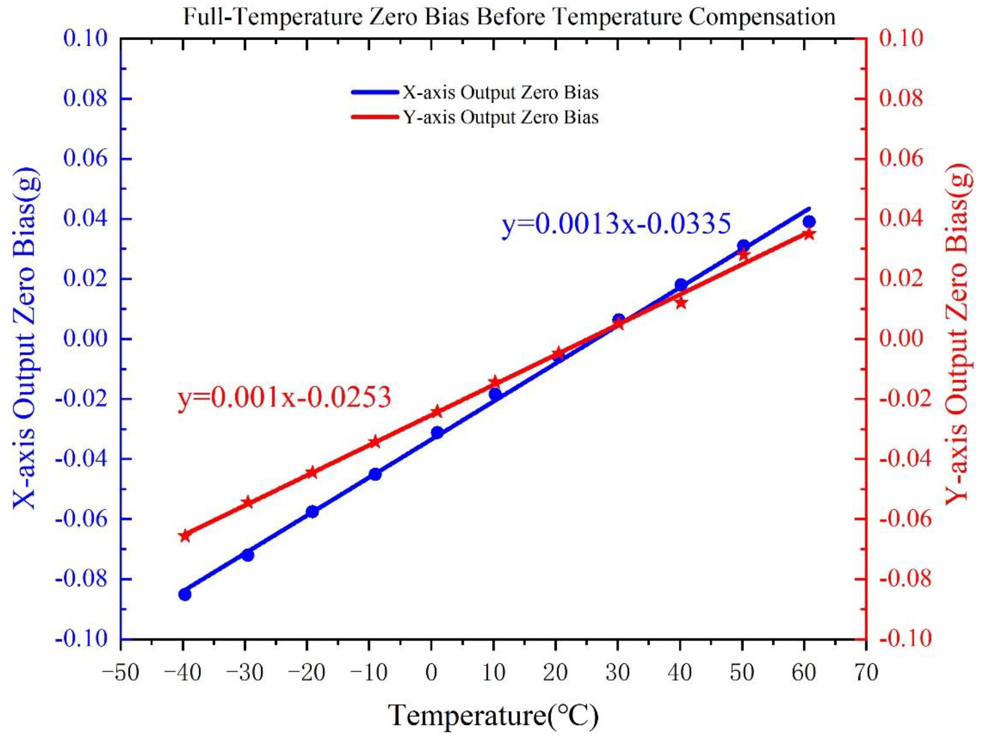 The results confirm the remarkable effectiveness of this framework. Before compensation, the temperature drift coefficients of the X- and Y-axes were approximately