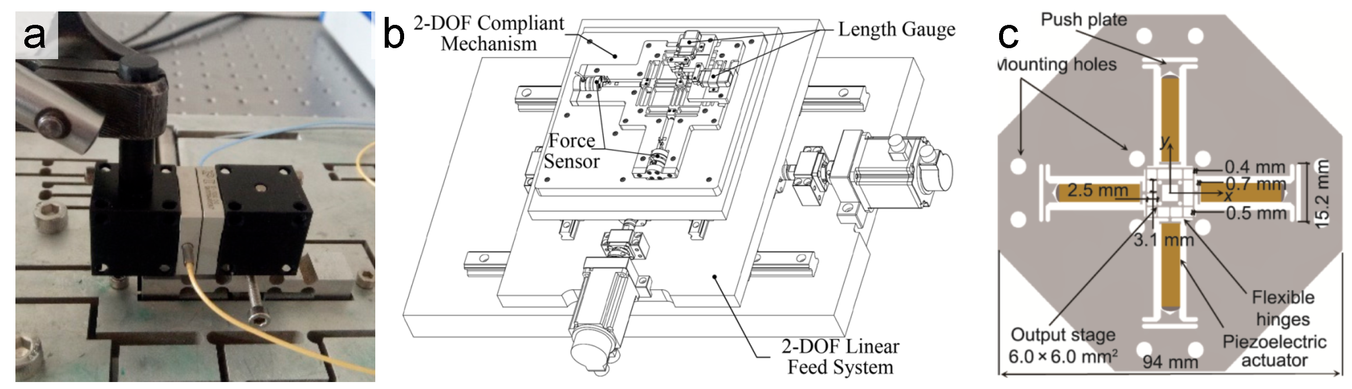 - Zhang, Z.; Yang, X.; Yan, P. Large dynamic range tracking of an XY compliant nanomanipulator with cross-axis coupling reduction. Mech. Syst. Signal Process. 2019, 117, 757–770. [Google Scholar] [CrossRef]