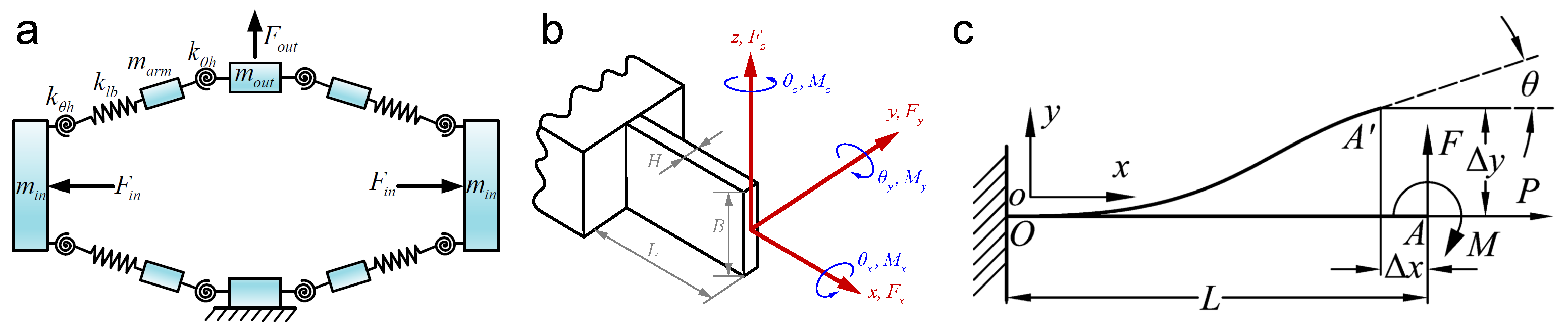 - Zhang, Y.; Wu, J.; Pan, J.; Yan, Z.; Tan, J. A new nonlinear spatial compliance model method for flexure leaf springs with large width-to-length ratio under large deformation. Micromachines 2022, 13, 1090. [Google Scholar] [CrossRef]