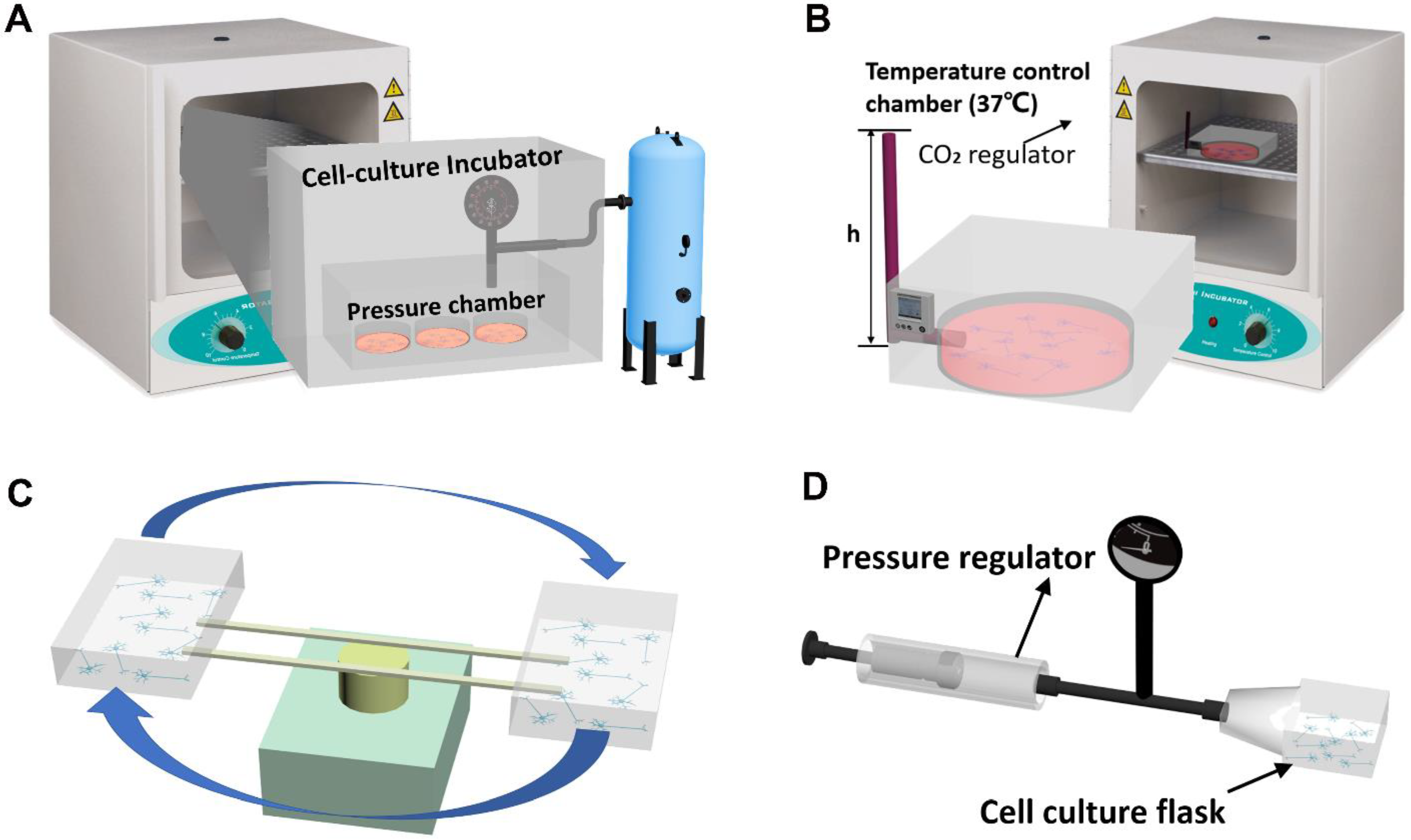 | Agar et al., 2000 [34] | Neuronal cell lines (B35 and PC12) B35 line is derived from the CNS of rat. | Cultured neuronal lines | Pressure type: Hydrostatic Setup: Pressurized Chamber Duration: 2 h Pressure level (mmHg): 100 |