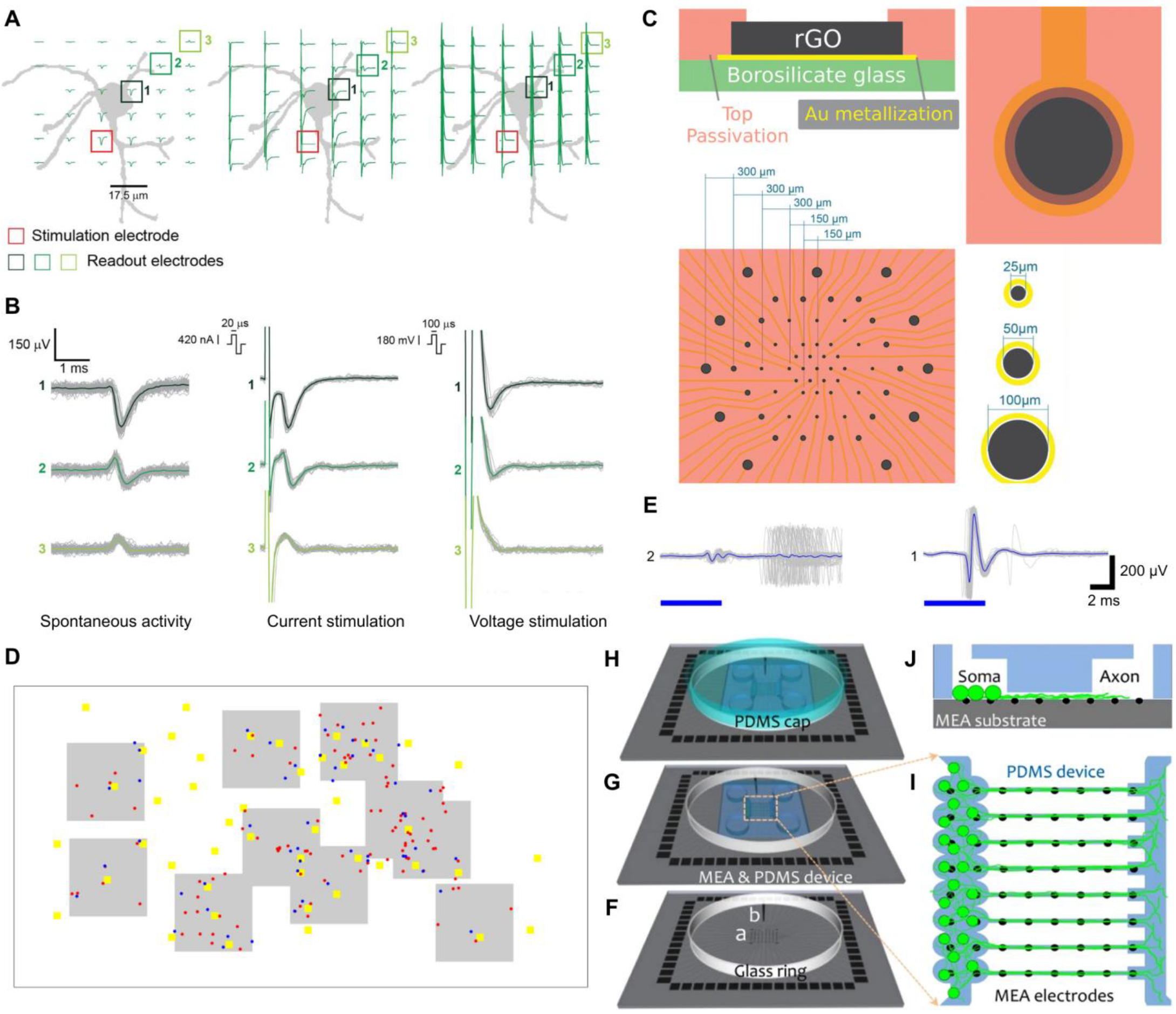 - Ronchi, S.; Fiscella, M.; Marchetti, C.; Viswam, V.; Müller, J.; Frey, U.; Hierlemann, A. Single-Cell Electrical Stimulation Using CMOS-Based High-Density Microelectrode Arrays. Front. Neurosci. 2019, 13, 208. [Google Scholar] [CrossRef]