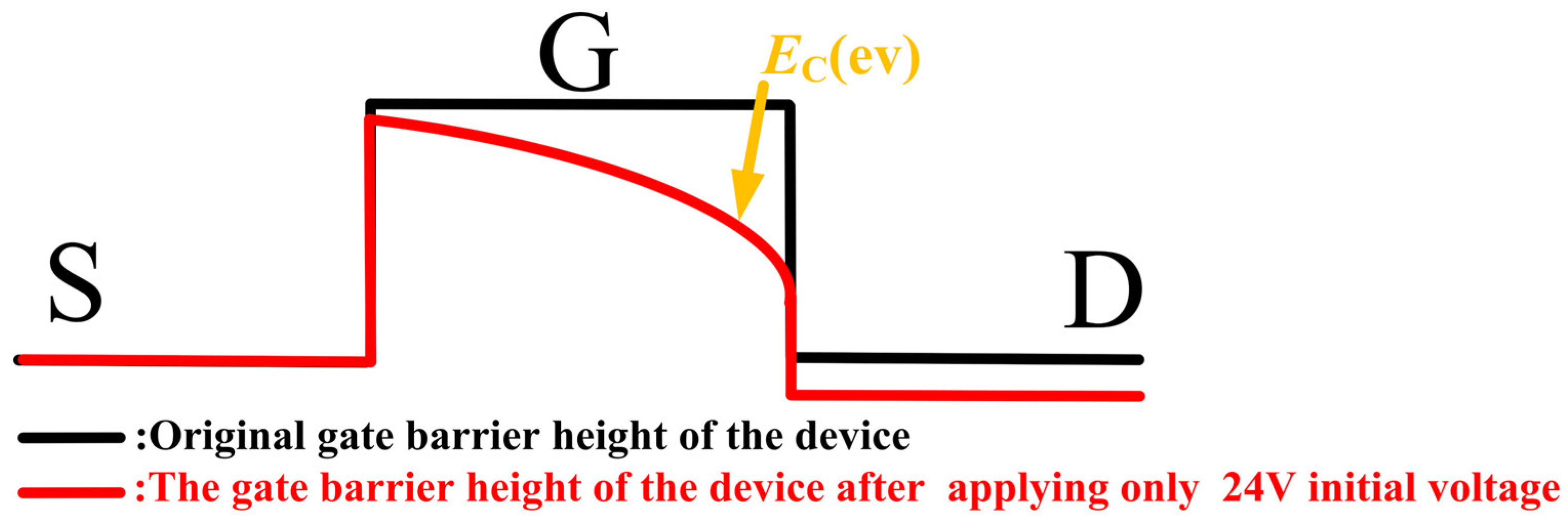 - Nuo, M.; Wei, J.; Wang, M.; Yang, J.; Wu, Y.; Hao, Y.; Shen, B. Gate/Drain Coupled Barrier Lowering Effect and Negative Threshold Voltage Shift in Schottky-Type p-GaN Gate HEMT. IEEE Trans. Electron Devices 2022, 69, 3630–3635. [Google Scholar] [CrossRef]