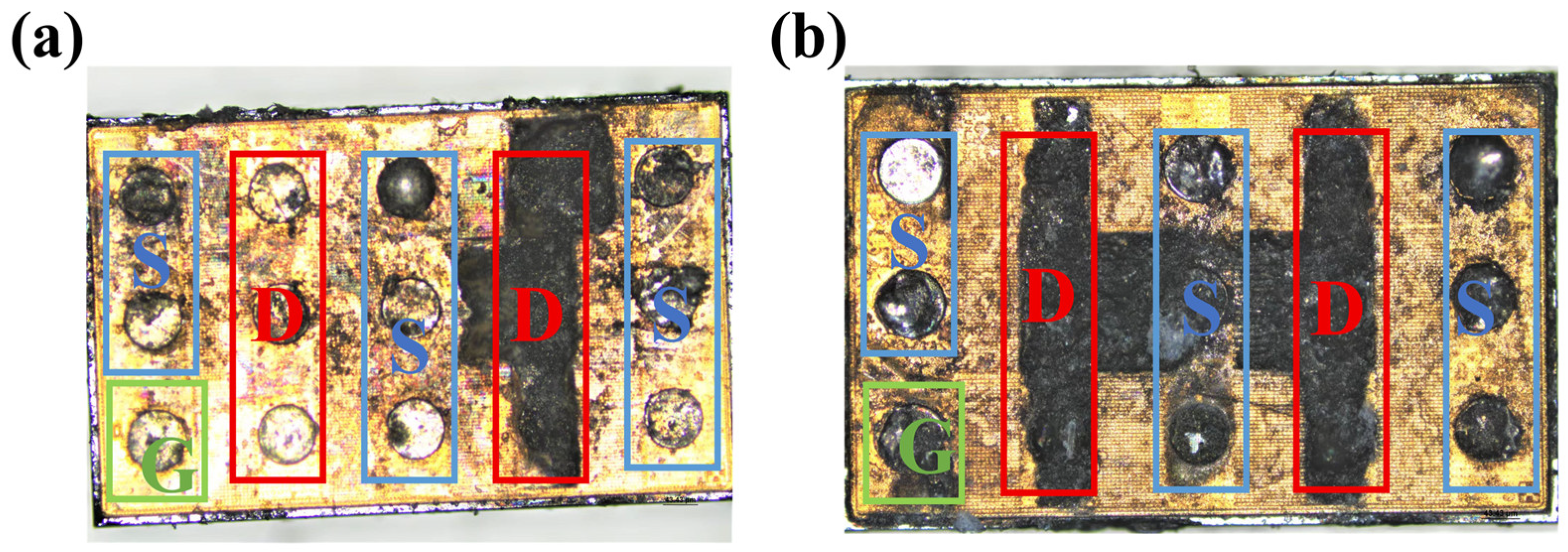 - Shi, Y.; He, Z.; Huang, Y.; Cai, Z.; Chen, Y.; Cheng, L.; Chen, W.; Sun, R.; Liu, C.; Lu, G.; et al. A Comparative Study on G-to-S ESD Robustness of the Ohmic-Gate and Schottky-Gate p-GaN HEMTs. IEEE Trans. Electron Devices 2023, 70, 2229–2234. [Google Scholar] [CrossRef]
