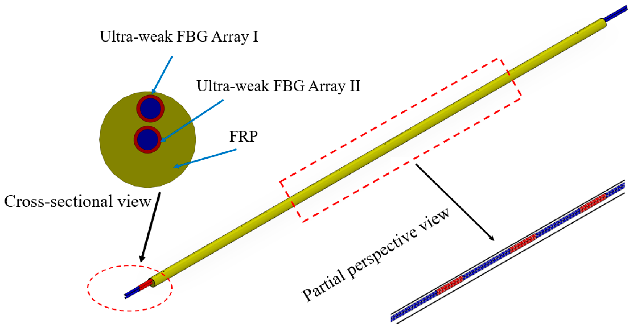 Table 1. Additionally, the FRP structure offers excellent corrosion resistance and superior mechanical properties. Encapsulating the ultra-weak FBG array within FRP effectively enhances the service performance of the ultra-weak FBG sensors.