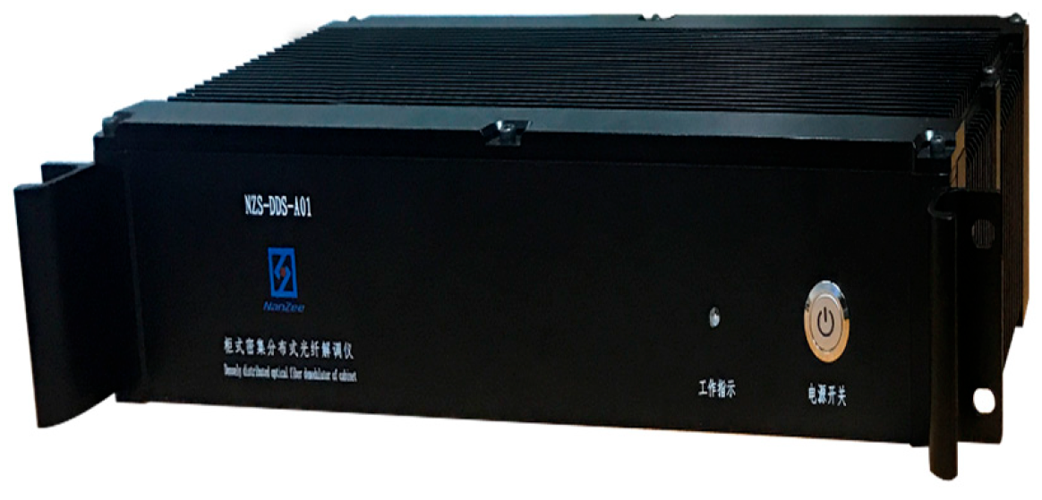 Figure 4 shows the data acquisition device, model NZS-DOS-A01, with a spatial resolution of 500 mm, wavelength measurement range of 1525–1565 nm, and accuracy of 1.5 pm.