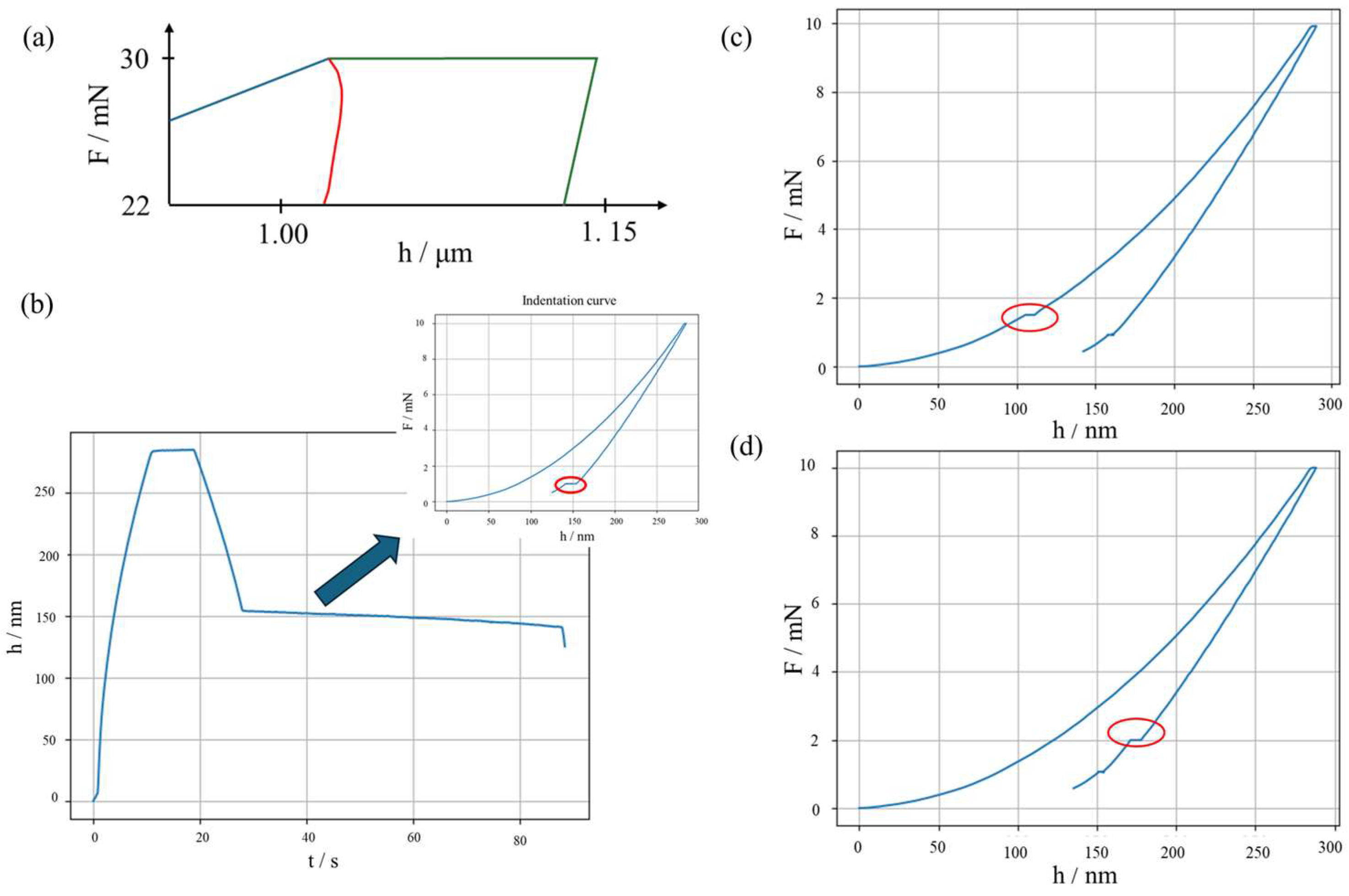 Quite in a dual manner, a pop-out event describes a sudden decrease in the penetration depth. Pop-out is typically induced by phase transformation to metastable phases [