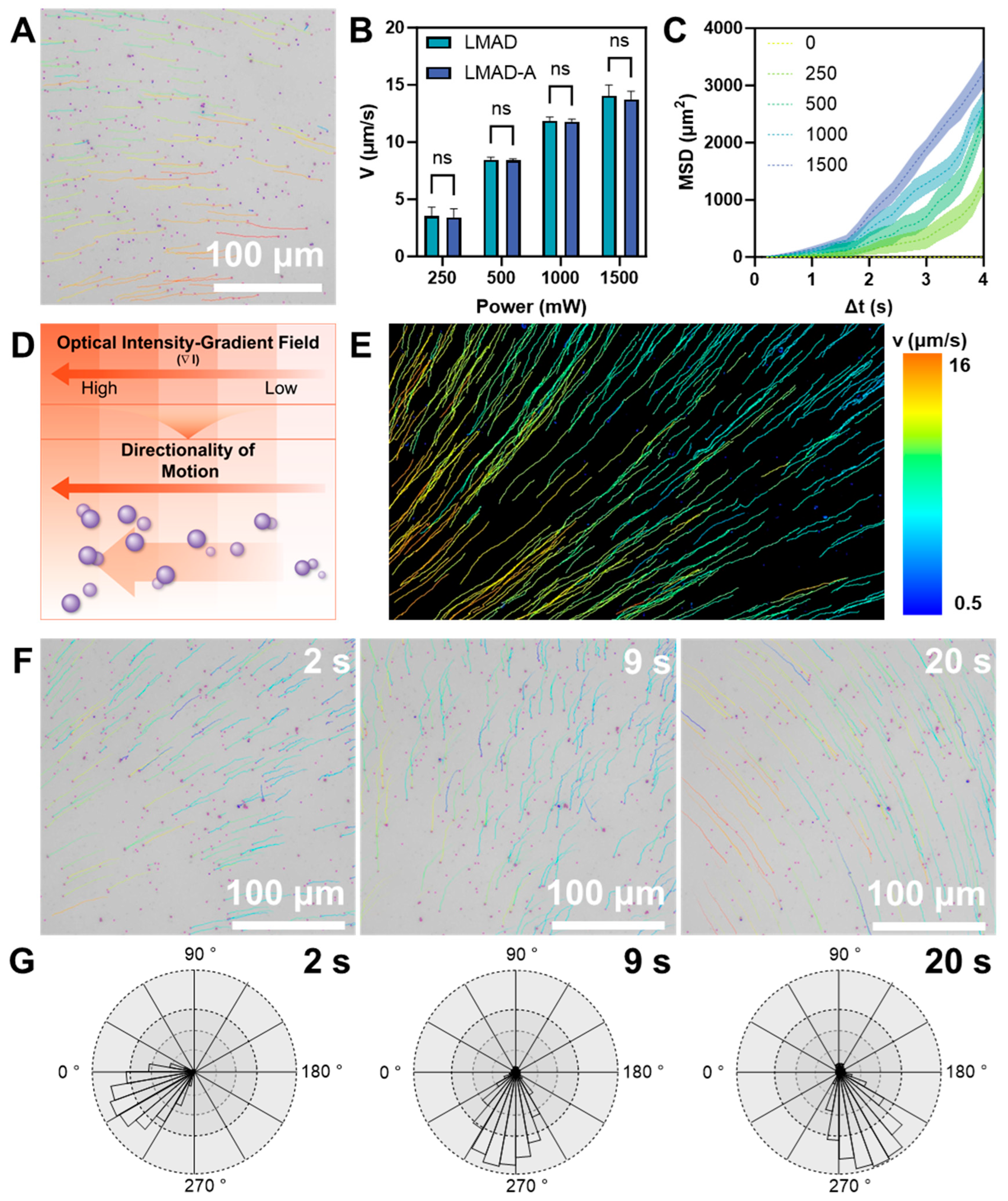 Figure 3D). Under the influence of this optical gradient, LMAD exhibited directional movement toward the light source, as shown in