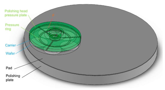 - Fu, G.; Chandra, A. The relationship between wafer surface pressure and wafer backside loading in Chemical Mechanical Polishing. Thin Solid Film. 2005, 474, 217–221. [Google Scholar] [CrossRef]