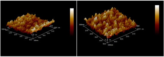 The composition and microstructure of thin films have an important influence on the properties of thin films, and the composition and microstructure of thin films can be deeply studied by characterization technology. In this paper, we used a scanning electron microscope (SEM) (ZEISS GeminiSEM 300, Jena, Germany) and Atomic Force Microscope (AFM) (Bruker Dimension Icon XR, Berlin, Germany) to observe. We observed the microstructure of the thin-film thermocouple with a high resolution scanning electron microscope, and analyzed the influence of its surface characteristics, lattice defects, and thin-film structure on thermoelectric performance. And we also used an Atomic Force Microscope (AFM). The roughness and surface morphology of the thin film were accurately measured by combining AFM to reveal the stability of the thin-film material in a high temperature environment. Figure 2 shows the SEM surface topography of NiCr and NiSi thermoelectric electrodes with a thickness of 500 nm. Figure 3 shows the AFM 3D surface topography of NiCr and NiSi thermoelectric electrodes with a thickness of 500 nm, and their surfaces are composed of dense and uniform island structures.