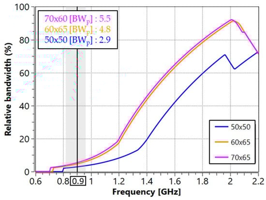 The average BWp results suggest that larger PCBs are more likely to achieve higher efficiencies due to their greater bandwidth. However, it is important to note that the observed values are relatively low, especially compared to the requirements of, for example, cellular bands, which demand a BWp of 15.1% at the centre frequency of 900 MHz to cover the entire 824 MHz–960 MHz frequency range.