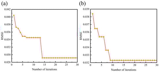 (2) Training Parameter Settings: Prior to training the PSO-BP neural network, it is necessary to configure the training parameters. Specifically, the maximum number of iterations for the training is set to 1000, with a required accuracy of 1 × 10−6, while default values are utilized for other parameters. These training parameters are established to ensure that the network achieves the desired training effect within a reasonable timeframe, thereby avoiding excessively long training durations or infinite loops.